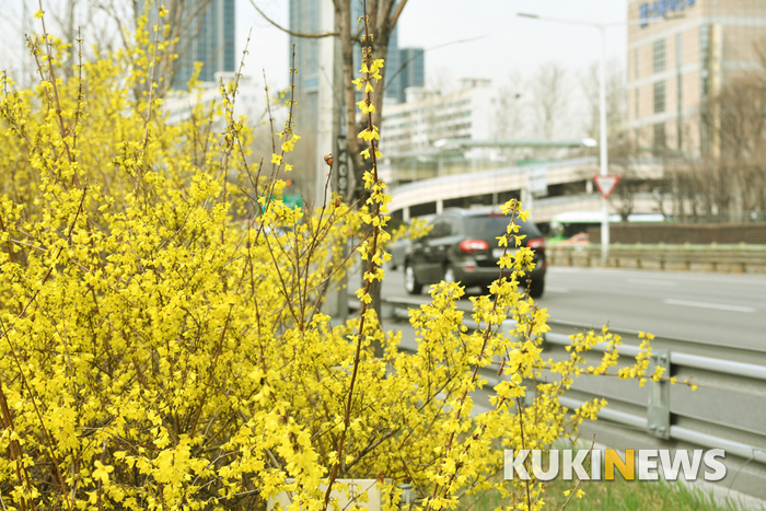 서울 시내에 활짝 핀 개나리