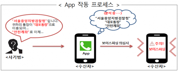 금감원은 이날 개발이 완료된 알고리즘을 후후앤컴퍼니, 소만사, 지란지교시큐리티 등 IT·보안기업 3곳에 무상으로 전달하고, 보이스피싱 방지 A앱이 사기전화를 판별해내는 일련의 과정을 직접 시연하는 시간을 가졌다. 보이스피싱 방지 앱은 현재 IBK기업은행 고객을 대상으로 시범운영 중이며, 시범운영 이후 전 국민을 대상으로 확대 운영될 예정이다.