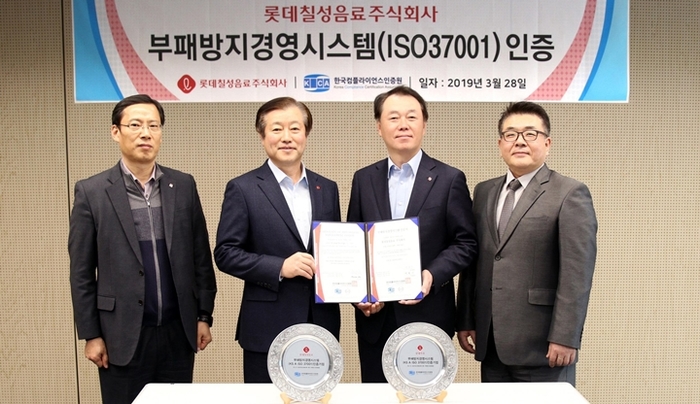 한편, 롯데칠성음료와 롯데주류는 29일 국제표준 부패방지경영시스템 공인인증기관인 한국컴플라이언스인증원으로부터 ISO37001 인증을 획득했다고 밝혔다. ISO37001은 국제표준화기구(ISO·International Organization For Standardization)가 제시하는 표준에 따라 리베이트, 금품, 뇌물 방지를 위한 부패방지경영시스템이다.