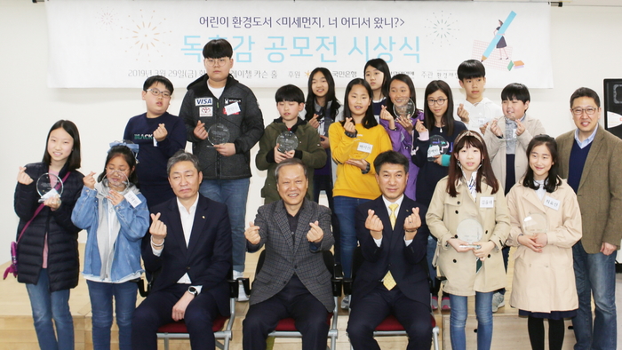 KB국민은행은 3월 29일, 서울 중구 환경재단 레이첼카슨홀에서 어린이 환경도서 ‘미세먼지, 너 어디서 왔니?’의 독후감 시상식을 진행했다고 밝혔다. 이날 행사에는 성채현 KB국민은행 소비자브랜드전략그룹 대표, 최열 환경재단 이사장 등이 참석했다.