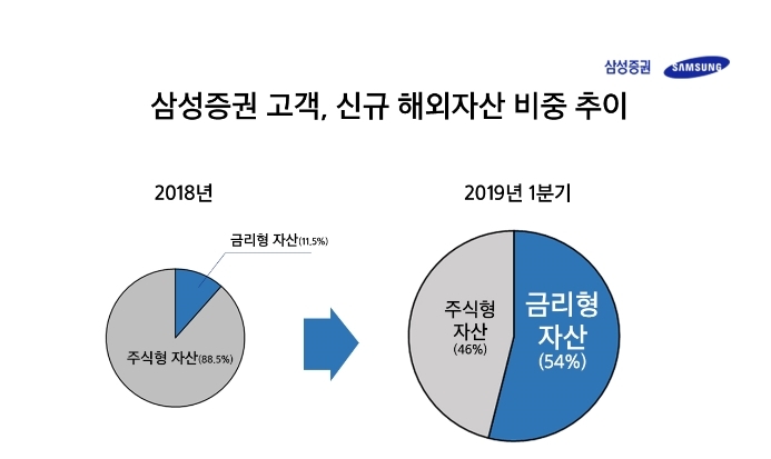 지난 2018년 한해 동안 해외자산 신규 증가분에서 금리형 자산의 비중이 11.5%에 그쳤던 것과 비교하면 4배 이상 증가한 수준이다.