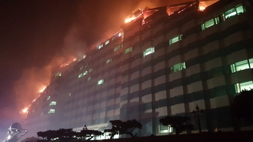 강원 강릉 옥계에서 발생한 산불이 동해 실버타운에도 피해를 입혔다.