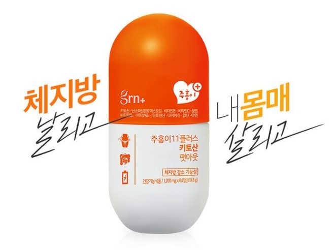 GRN주홍이는 체지방 감소, 콜레스테롤 개선에 도움을 줄 수 있는 키토산(폴리글루코사민)을 주원료로 함유해 단기 다이어트, 뱃살 다이어트에 효과적이라 알려지며 특히 40대~50대 여성들에게 인기를 끌고 있다. 또한, 함께 주원료로 함유된 식이섬유(난소화성말토덱스트린)은 원활한 배변활동을 도와 흡착한 지방을 배출해준다. 주홍이는 비만의 원인이 되는 체지방을 바로 정확하게 공략하고 주홍이 하나만 섭취하면 되기 때문에 GRN 베스트셀러 분홍이, 초록이의 장점을 하나로 모았다는 평을 받고 있다.