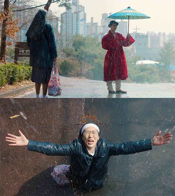 김해일은 “수녀님께 주님의 계시를 내려달라”라고 기도했다. 김인경은 갑자기 내린 소나기에 장바구니를 놓쳤고, 마침 누군가 우산을 씌워줬다. 화투 속 비광의 모습을 한 상대를 본 김인경은 김해일에 “내가 하겠다”라고 결심해 웃음은 안겼다.