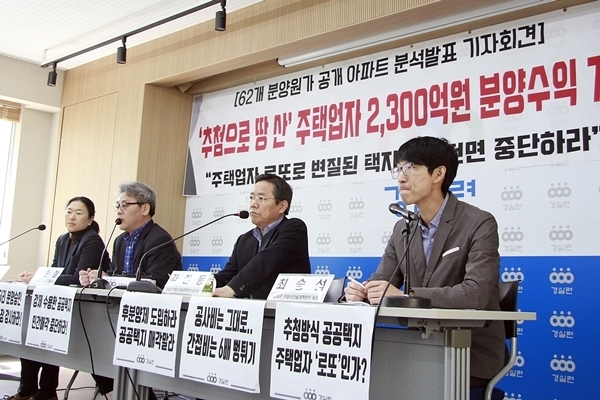 북위례 힐스테이트는 정부가 지난달 공공공택지 내 공동주택 분양가격 공시항목을 종전 12개에서 62개로 확대 시행한 이후 최초로 분양한 아파트다. 경실련측은 이날 “북위례 힐스테이트의 엉터리 분양원가에도 불구하고 하남시청은 제대로 된 검증을 하지 못했다”며 “담당 공무원들이 분양원가 심사·승인업무를 엉터리로 했을 가능성이 있다”고 주장했다.