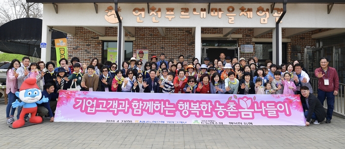 NH농협은행은 23일 기업고객 임직원과 가족 80여명을 초청해 경기 연천 푸르내마을에서 기업고객과 함께하는 2019년 행복한 봄나들이 행사를 실시했다고 밝혔다.