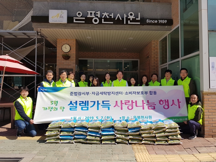 NH농협은행은 서윤성 준법감시·금융소비자보호부문 부행장과 준법감시부·자금세탁방지센터·소비자보호부 직원들이 지난 7일 서울 은평구 ‘은평천사원’을 찾아 아이 돌봄 및 장난감 소독·숙소 청소 등 봉사활동을 펼치고 사랑의 쌀을 전달했다고 8일 밝혔다.