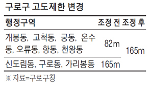 서울 구로구 고척·개봉·오류동 일대 고도제한이 기존 82m에서 165m로 두 배 가량 완화된다.