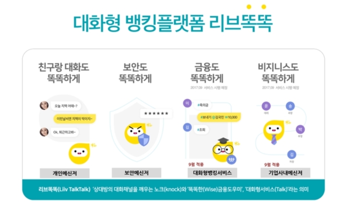 KB금융그룹은 행사장에서 종합 부동산 플랫폼 ‘리브온’과 대화형 뱅킹 플랫폼 ‘리브똑똑’, 신개념 핀테크 카드 플랫폼 ‘알파’를 전시하고, 신한금융그룹은 A.I 금융상담 봇 ‘오로라’, 얼굴로 결제하는 ‘페이스 데이’, AR(증강현실) 상품 안내장 및 건강증진형 치아보험 서비스를 공개한다.