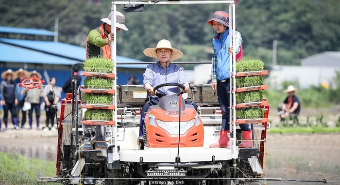 문재인 대통령이 모내기철을 맞아 농민으로 변신했다. 그는 직접 이양기를 몰고 모내기에 동참하며 농민들과 담소를 나눴다.