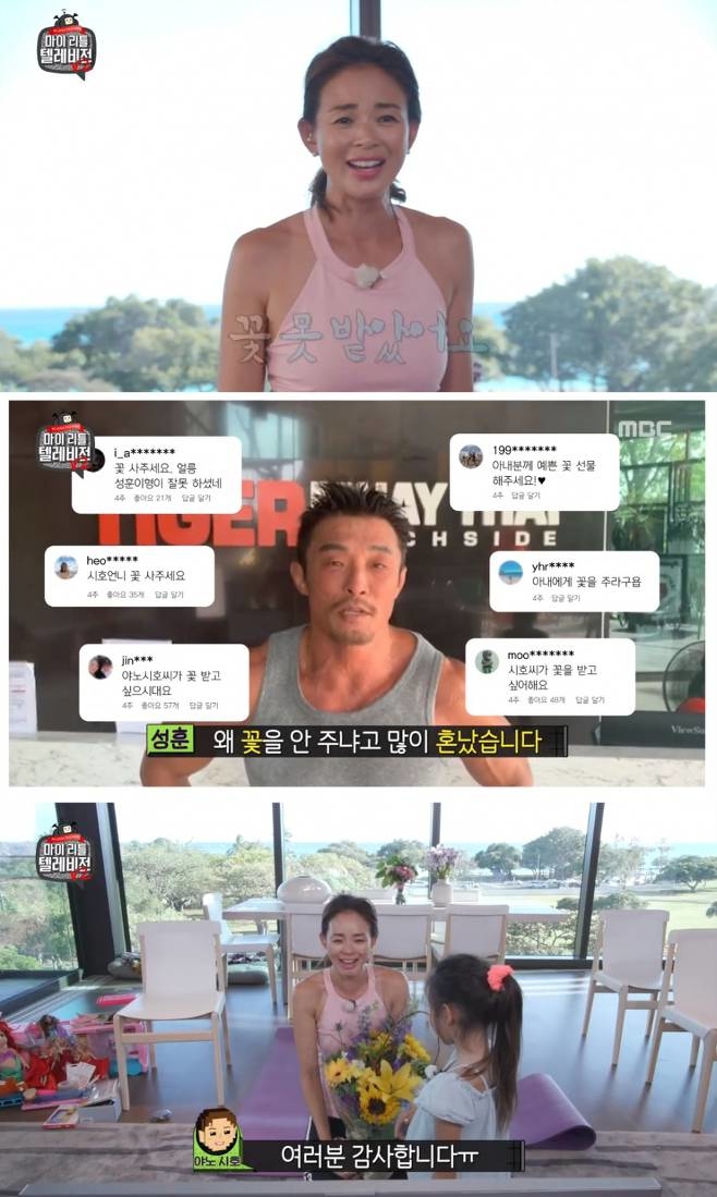 야노시호는 지난 방송에서 추성훈의 SNS에 꽃 좀 달라고 써달라고 부탁했다. 이번 회에 추성훈에게 꽃을 받았냐는 질문에 야노시호는 못 받았다고 슬프게 웃었다. 이어 "제가 가지고 와서 (저 스스로에게) 줬어요"라며 본인이 직접 꽃을 사왔다고 고백했다.
