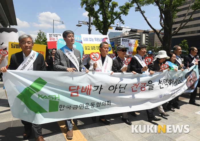 '세계 금연의 날'인 31일 서울 종로구 세종로공원에서 한국금연운동협의회 관계자들이 금연 홍보 캠페인을 하고 있다.