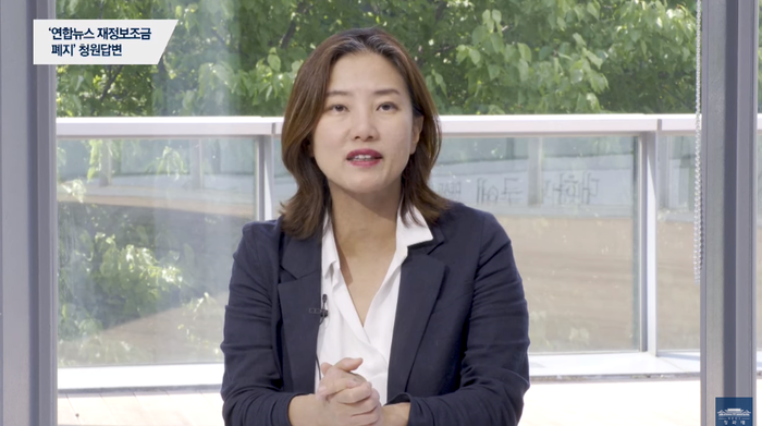 답변에 나선 청와대는 먼저 연합뉴스의 재정보조 제도에 대해 설명했다. 청와대는 “연합뉴스에 대한 재정보조는 2003년 4월 30일 국회가 제정한 ‘뉴스통신진흥에 관한 법률’에 따라 집행되고 있다”고 설명했다.