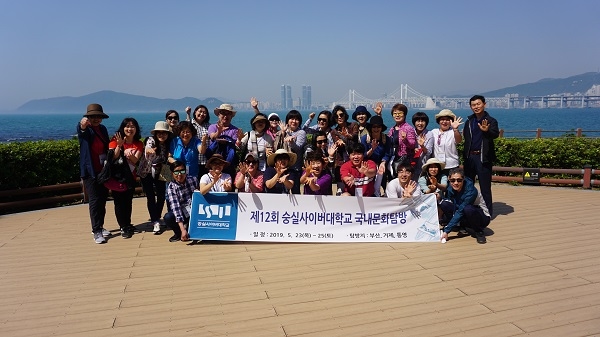 숭실사이버대학교 재학생 26명과 교직원 3명이 참석한 이번 국내문화탐방은 동백섬, 거제 포로수용소 유적공원, 부산, 통영, 거제 일대의 역사•문화 명소 방문 및 경남 지역 기독교 유적지를 방문하는 기회를 가졌다.