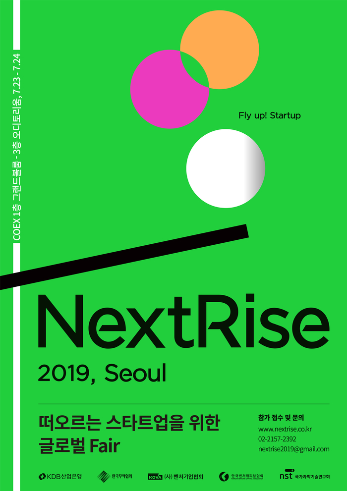 일본, 싱가폴, 호주, 브라질 등 국내 스타트업에 관심이 있는 다양한 국가의 VC들도 참여할 예정이다. 참여를 원하는 벤처·스타트업은 ‘NextRise 2019, Seoul’ 공식 홈페이지에서 16일까지 신청접수를 마감해야 한다.