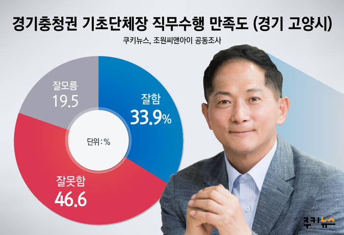 쿠키뉴스 의뢰로 여론조사기관 조원씨앤아이가 지난 7일부터 9일까지 사흘간 경기도 고양시 에 거주하는 만 19세이상 성인 남녀 503명을 대상으로 ‘이재준 고양시장의 직무수행 평가 조사’를 한 결과, ‘잘못함’이 46.6%(매우 잘못함 25.6%, 잘하지 못하는 편 21.0%)로 부정평가가 우세했다.