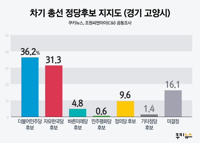이번 조사는 쿠키뉴스와 조원씨앤아이가 공동으로 6월 7일부터 9일까지 사흘간, 경기도 고양시 거주 만19세 이상 남녀를 대상으로 ARS 여론조사(유선 RDD 5%, 통신사 제공 휴대전화 가상번호 95% 방식, 성,연령,지역별 비례할당무작위추출)를 실시한 결과다. 표본수는 503명(총 통화시도 1만441명, 응답률 4.8%), 표본오차는 95% 신뢰수준에 ±4.4%p다. 이밖의 사항은 중앙선거여론조사심의위원회 홈페이지 참조하면 된다.