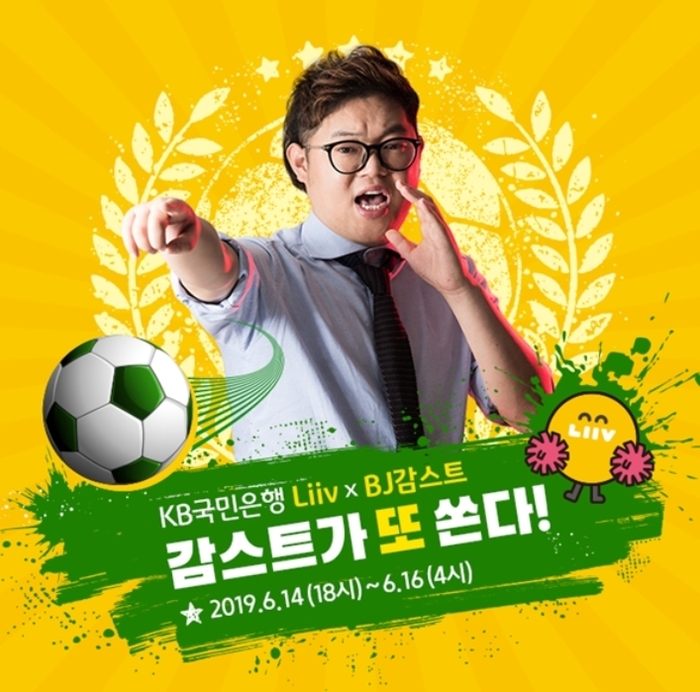 KB국민은행이 감스트와 함께 리브(Liiv)를 통한 축구 응원 이벤트를 진행한다.