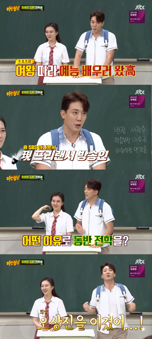 22일 오후 방송된 종합편성채널 JTBC ‘아는 형님’에서는 장윤정과 SBS 아나운서 출신 김환이 전학생으로 출연했다.