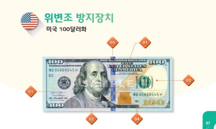 가이드북에는 위변조 방지장치의 개괄적인 설명, 주요 외화의 위변조 방지장치, 위폐 발견시 행동요령을 담고있어 외화를 취급하는 비전문가들에게 큰 도움이 될 것으로 기대되고 있다.