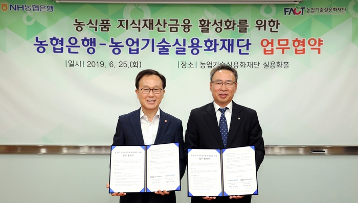 NH농협은행은 25일 전북 익산시 소재 농업기술실용화재단 본사에서 농업기술실용화재단과 ‘농식품 지식재산금융 활성화를 위한 업무협약’을 체결했다고 밝혔다.