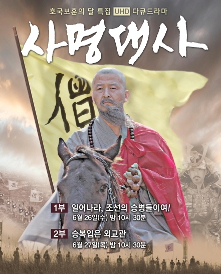 한편, UHD 다큐멘터리 사명대사는 1, 2부로, '제1부 일어나라, 조선의 승병들이여!'에서는 조선불교를 끌고 갈 인물로 촉망 받음과 동시에 당대 최고의 유학자들과 교류했던 지성인, 사명대사가 임진왜란 당시 승병장으로 활동한 이야기와 이름 없이 죽어간 수많은 승병들의 이야기를 역사적 기록과 함께 다큐 드라마 형식으로 나타냈다.