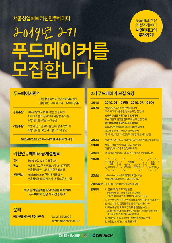 먹방, 맛집의 인기가 높아지면서 나만의 레시피를 활용한 외식창업을 준비하는 예비창업자가 늘어나고 있다. ‘푸드메이커’는 F&B 비즈니스를 준비하는 예비 창업자 지원 사업으로 메뉴 개발 및 검증부터 공유주방, 코워킹 스페이스를 지원한다. F&B비즈니스 운영 노하우를 전달해 성공적인 창업이 될 수 있도록 메뉴 개발, 브랜딩, 경영, 컨설팅 등 인큐베이팅 프로그램이 운영되고 있다. 특히, 임대료 없이 주방 설비를 갖춘 6평 규모의 공간을 지원하고 있어 개발이 완료된 메뉴를 직접 판매할 수 있다. 우수 메이커로 선정된 예비 창업자에겐 푸드테크 초기 투자 유치 기회가 제공된다. 7월 10일까지 사업 참가자를 모집하며, 서울창업허브 홈페이지에서 신청할 수 있다.