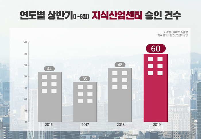 이는 전년 같은 기간 48건보다 25.0% 많은 것으로 지식산업센터 제도가 시행된 1970년 이후 동기간 최다 승인 건수다.