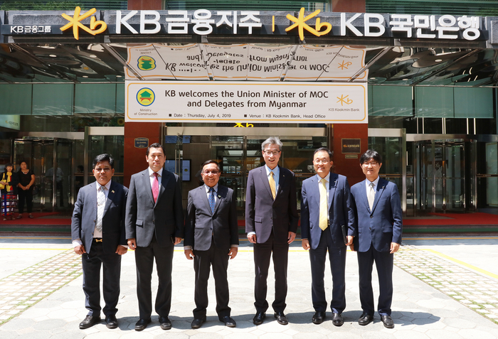 KB국민은행은 4일 여의도 본점에서 우한조(U Han Zaw) 미얀마 건설부장관과 우딴신(U Thant Sin) 주한미얀마대사 등 미얀마 정부 고위관계자를 만나 주택금융 관련 상호 협력방안을 논의했다고 밝혔다. 미얀마 건설부와 KB국민은행은 2017년 2월 미얀마 정부의 주택공급 정책 지원 및 미얀마 주택금융시장 발전을 위한 협력관계 구축을 위해 MOU를 체결한 바 있다.