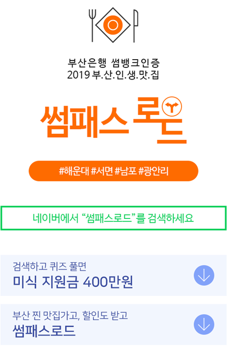썸뱅크는 여름휴가철을 맞이해 부산의 가볼만한 대표적인 관광지 4곳(해운대, 서면, 남포, 광안리) 일대의 맛집 16곳을 소개하고 퀴즈를 통한 미식지원금을 지원하는 '썸패스로드'를 진행한다.