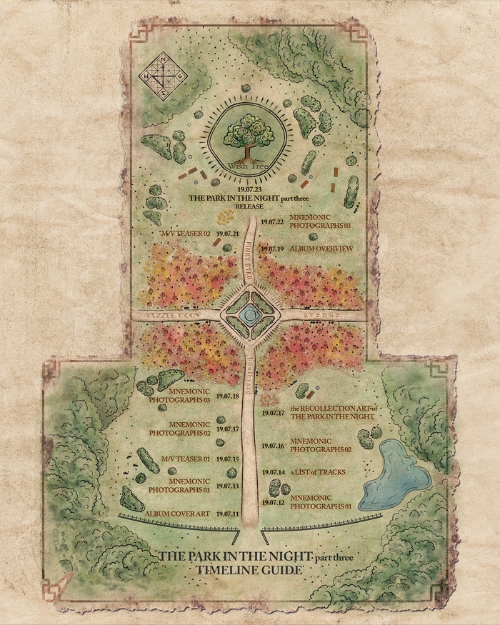 타임라인 이미지는 한 마을의 지도를 연상시키는 그림으로 구성됐으며 공원소녀의 상징적 나무 위시 트리(Wish Tree) 방향으로 티저 콘텐츠 오픈 일정이 나열돼 있다.