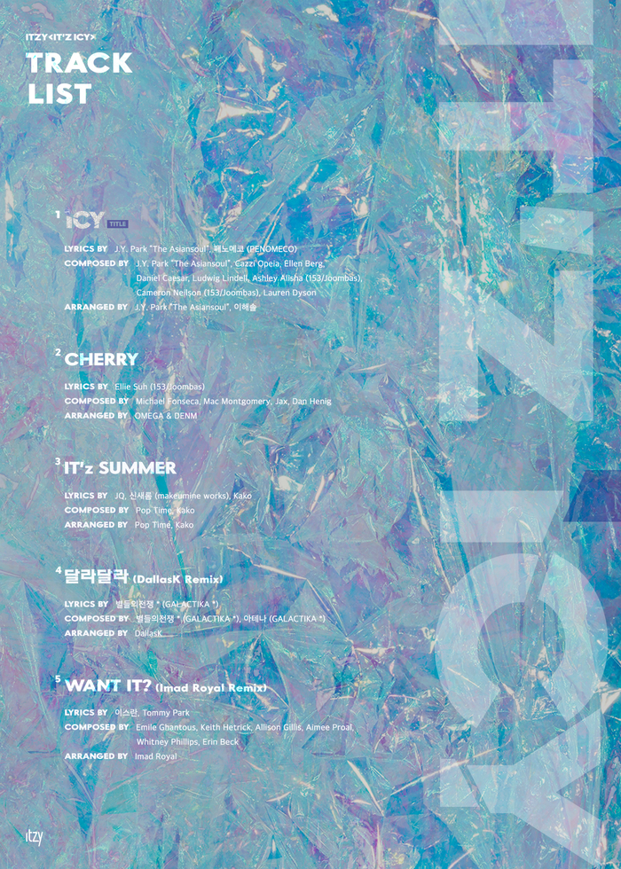 해당 트랙리스트에 따르면 1번 트랙의 타이틀곡 '아이씨'는 박진영이 작사, 작곡을 맡았다.