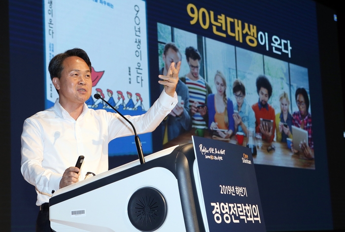 진옥동 신한은행장은 19일 열린 경영전략회의에서 ‘고객중심’과 ‘신한문화’에 대해 강조했다.