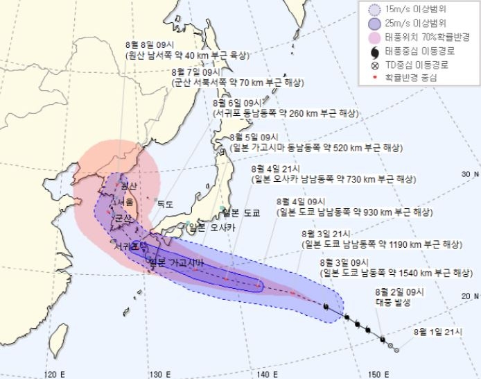 기상청은 “아직 태풍의 경로와 강도가 유동적이기 때문에 현재 예상과 달라질 수 있다”고 밝혔다.
