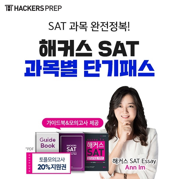 유학시험 전문 인강 해커스프렙에서 SAT를 단기간에 정복할 수 있는 ‘해커스 SAT 완전정복 과목별 단기패스’와 ‘해커스 SAT 교재제공 All-in-One(올인원) 패스’를 선보여 눈길을 끈다.