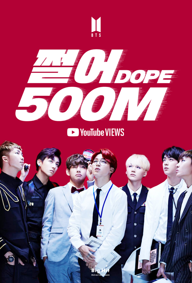 이로써 방탄소년단은 현재 7억9000만 뷰를 넘어선 'DNA'를 비롯해 '불타오르네', '페이크 러브'(FAKE LOVE), '마이크 드롭 리믹스'(MIC DROP REMIX), '아이돌'(IDOL)에 이어 통산 여섯 번째 5억 뷰 뮤직비디오를 보유하게 됐다.