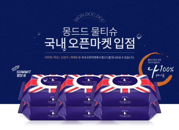 한편, 몽드드 친환경 물티슈는 출시와 함께 소셜쇼핑 위메프에서 완판을 기록했고, G마켓, 옥션, 11번가, AK몰, CJ몰에도 입점 중이다.