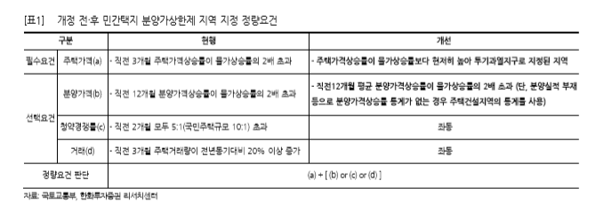 이어 “분양가 상한제가 조합원들의 분담금 증가와 직결되는 만큼 초기 단계의 재건축재개발 사업들은 추진동력을 상실한 반면, 후분양을 통해 주택도시보증공사(HUG)의 분양가 규제를 피하려던 일부 단지들은 서둘러 선분 양으로 다시 선회할 가능성이 높아졌다”고 덧붙였다.