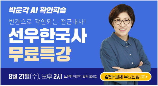 수험교육 전문 기업 박문각은 이달 21일 공무원 수험생들을 대상으로 ‘선우한국사 AI 확인학습 무료특강’을 실시한다고 13일 밝혔다.