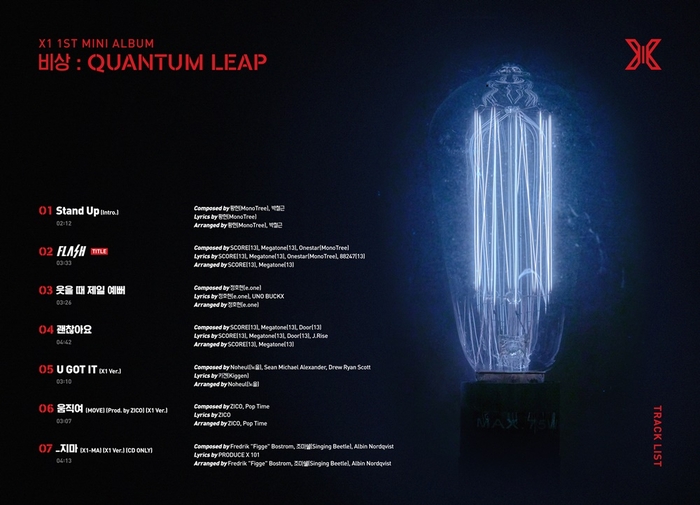 19일 엑스원의 첫 번째 미니 앨범 '비상 : 퀀텀 리프'(비상: QUANTUM LEAP) 트랙 리스트가 공개됐다.