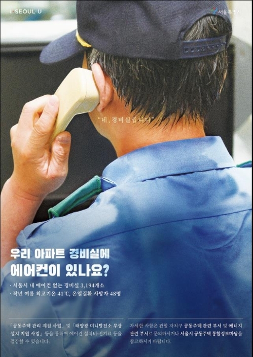 시는 '입주자대표회의 및 입주민 반대' 역시 비용 문제가 가장 큰 이유인 것으로 보고 '아파트 경비실 태양광 미니발전소 지원사업', 자치구별 '경비실 에어컨 설치지원' 사업을 적극 안내해 설치를 유도한다는 계획이다.