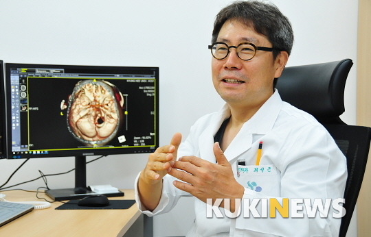 최 교수가 주로 다루는 뇌동맥류는 구불구불하게 되어있는 뇌혈관에서 선천적으로 약한 부분이 압력에 의해 풍선처럼 부풀어 올라서 문제가 생기는 질환을 말한다. 다만, 뇌동맥류의 원인은 불분명한 것으로 알려져 있다. 그는 “사전 징후도 없는 편”이라며 “평소에 느끼지 못한 두통 정도에 불과하다. 이런 증상이 있다면 MRI 등을 찍어보라고 권하지만, 대다수가 참고 넘어간다”고 안타까워했다.