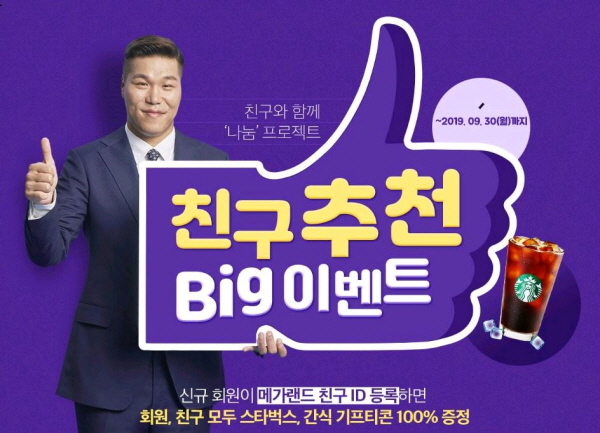 또한 신규가입자가 메가랜드에서 결제 후 수강생이 되면 신규가입자와 친구 모두에게 굽네치킨+콜라1.25L, 피자알볼로 포테이토L + 콜라1.25L, 파리바게트 클래식 쇼콜라 케이크 중 하나가 제공된다. 선택은 수강생이 하면 된다.