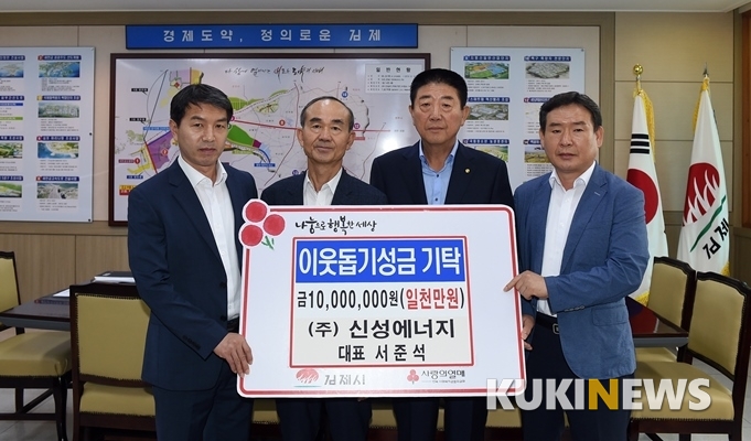 김제시 죽산면 자고마을이 고향인 (주)신성에너지 서준석 대표는 28일 추석 명절을 맞아 고향의 어려운 이웃에게 희망을 주기위해 이웃돕기 성금 1,000만 원을 기탁했다.