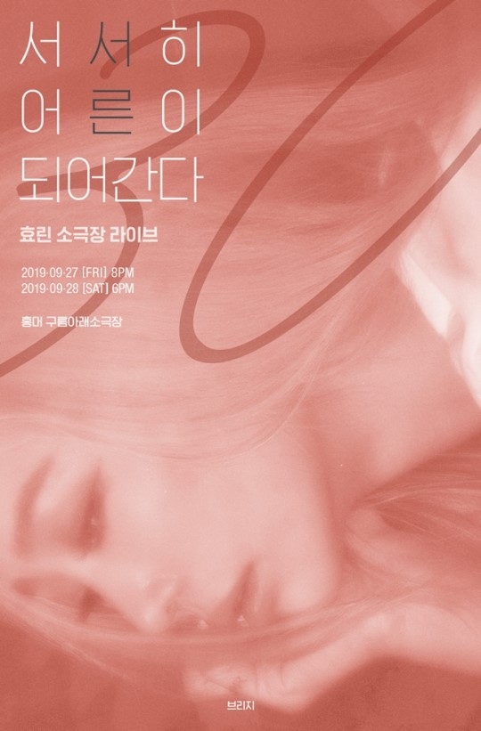효린은 오는 27~28일 양일간 서울 와우산로 홍대 구름아래소극장에 '서서히 어른이 되어간다'라는 제목의 공연을 연다.