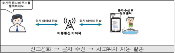 ‘해양 사고위치 문자 알림 서비스'는 사고 신고자가 해양경찰청 상황실에 조난 신고를 하면 근무자가 신고자 스마트폰에 문자메시지를 보내게 된다. 신고자가 전송된 문자메세지의 인터넷 주소를 클릭만 하면 자동으로 신고자의 위치(위‧경도 좌표)가 해양경찰청에 전송되는 방식이다. 다만 2G폰 사용자는 제외된다.