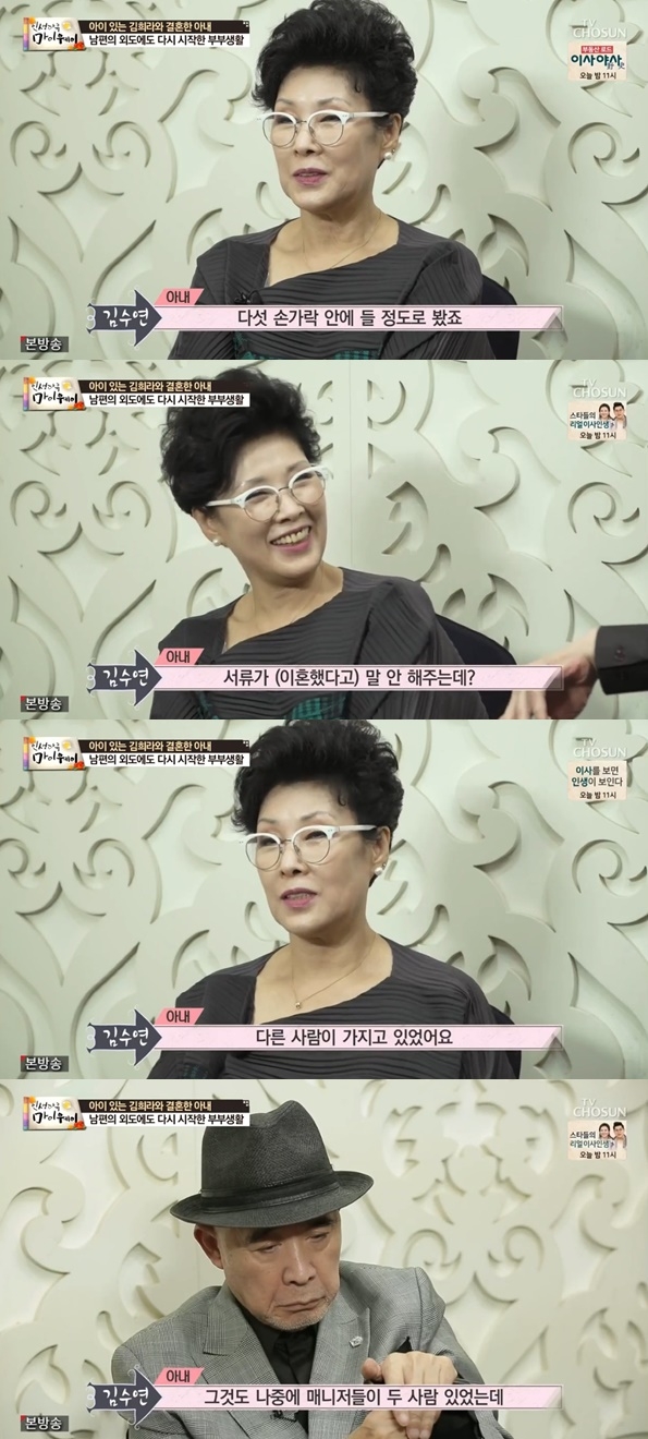 김수연은 "그때 남편이 만나는 사람이 있었나 보다. 이 사람이 벌어온 돈도 자기가 가지고 있지 않고, 다른 사람이 가지고 있었다. 그것도 나중에 매니저들이 말해줘서 안 것"이라고 털어놨다.