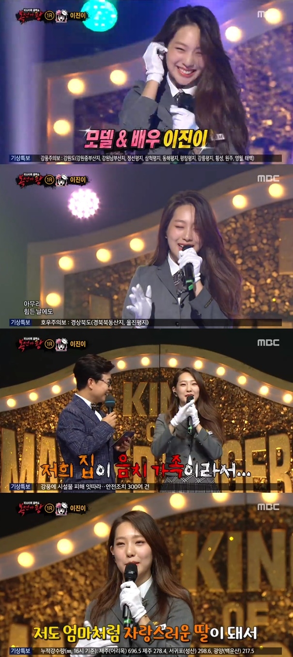 모델 겸 배우 이진이가 22일 오후 방송된 MBC 예능프로그램 '복면가왕'에서 엄마인 배우 황신혜를 언급했다.