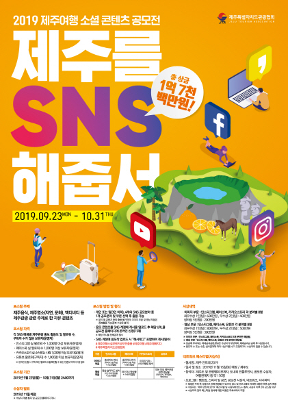 제주특별자치도관광협회에서 전국 아마추어 SNS 인플루언서들을 대상으로 ‘2019 제주여행 소셜 콘텐츠 공모전’을 진행한다고 밝혔다.