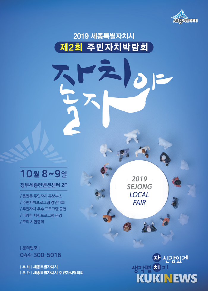 세종특별자치시(시장 이춘희)가 10월 8, 9일 이틀에 걸쳐 정부세종컨벤션센터 기획전시실에서 ‘제2회 세종시 주민자치박람회’를 개최한다.